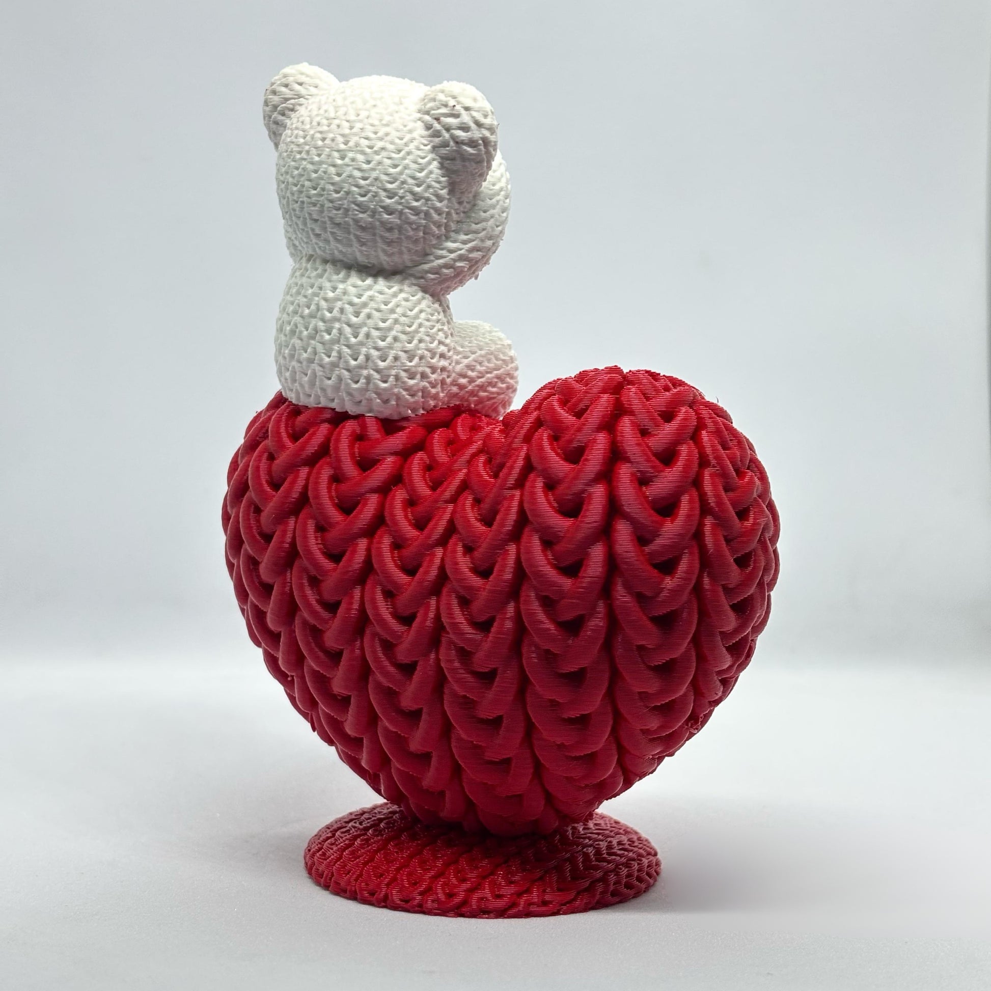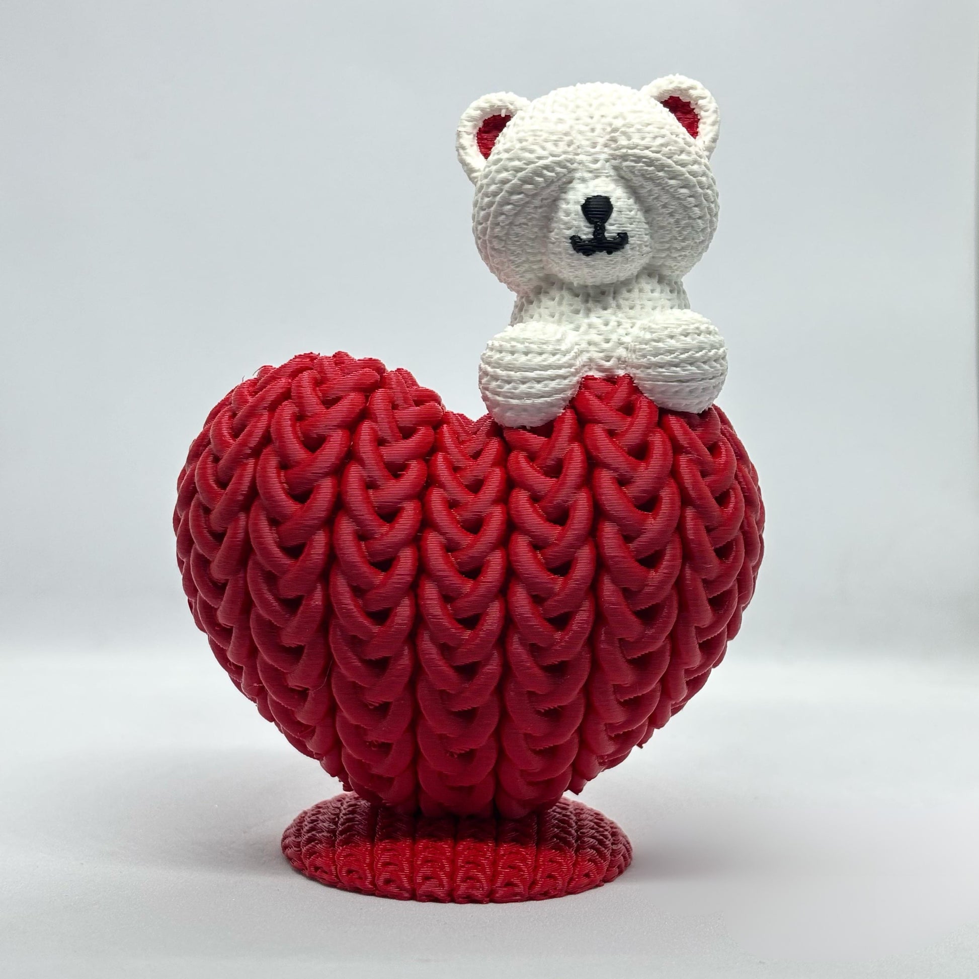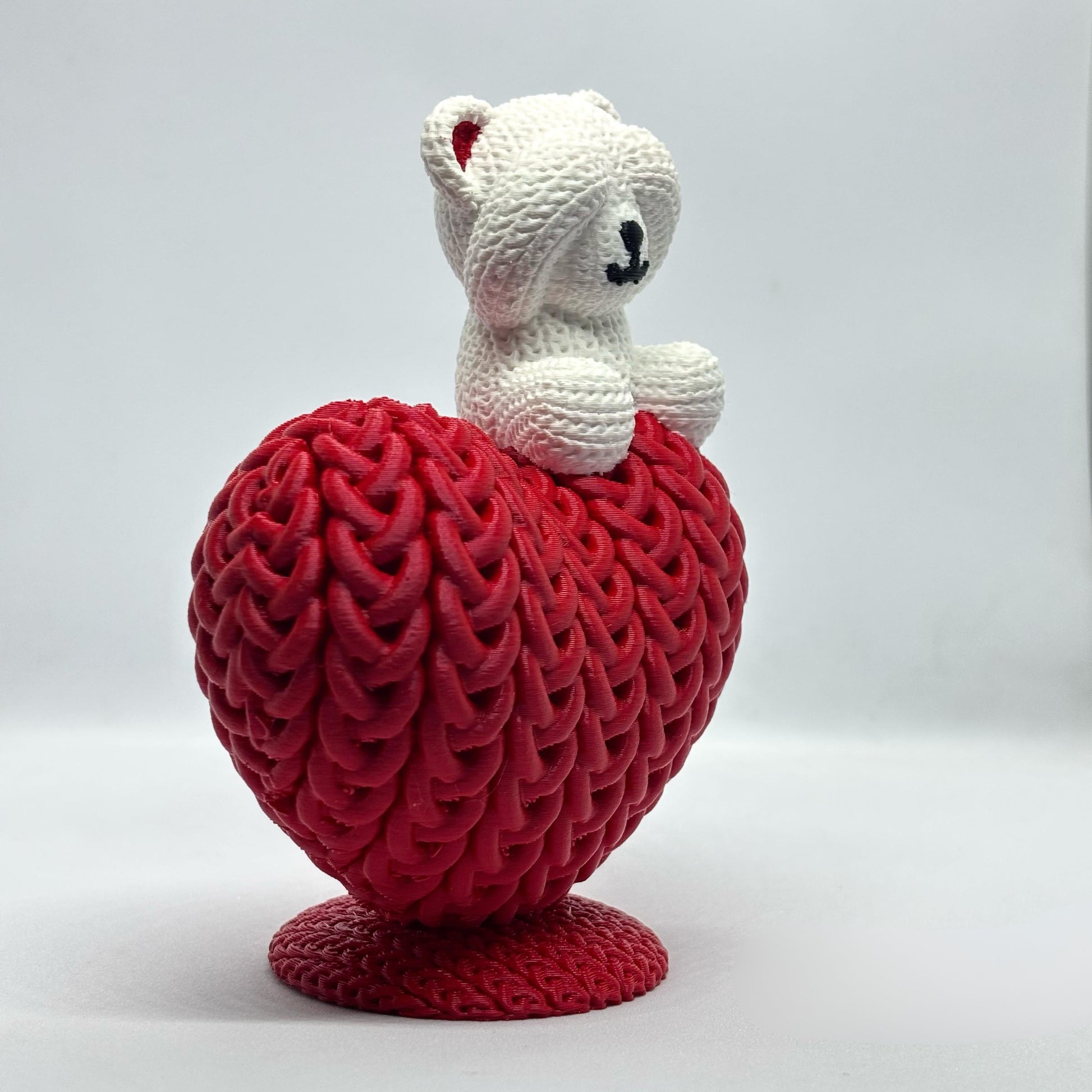 ❤️ 3D yazıcı ile üretilmiş aşk ayısı tasarımlı örgü dokulu anahtarlık.